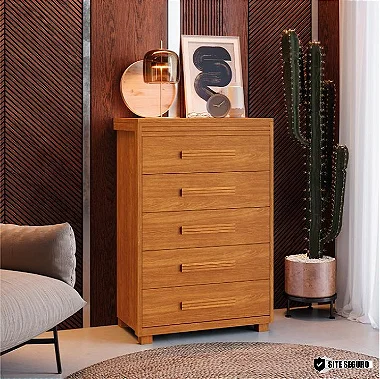 A Cômoda Paris 100% MDF da Barreto Lonçarcci é a escolha ideal para quem busca aliar sofisticação e funcionalidade no ambiente. Com design moderno e acabamento refinado, ela possui cinco gavetas equipadas com corrediças telescópicas, garantindo um deslizamento suave e prático. Os puxadores em MDF e o tampo de 20 mm conferem um toque de elegância, enquanto os pés em madeira asseguram estabilidade. Além disso, o reforço no fundo das gavetas e o encabeçamento de 20 mm nas laterais e base proporcionam maior durabilidade.