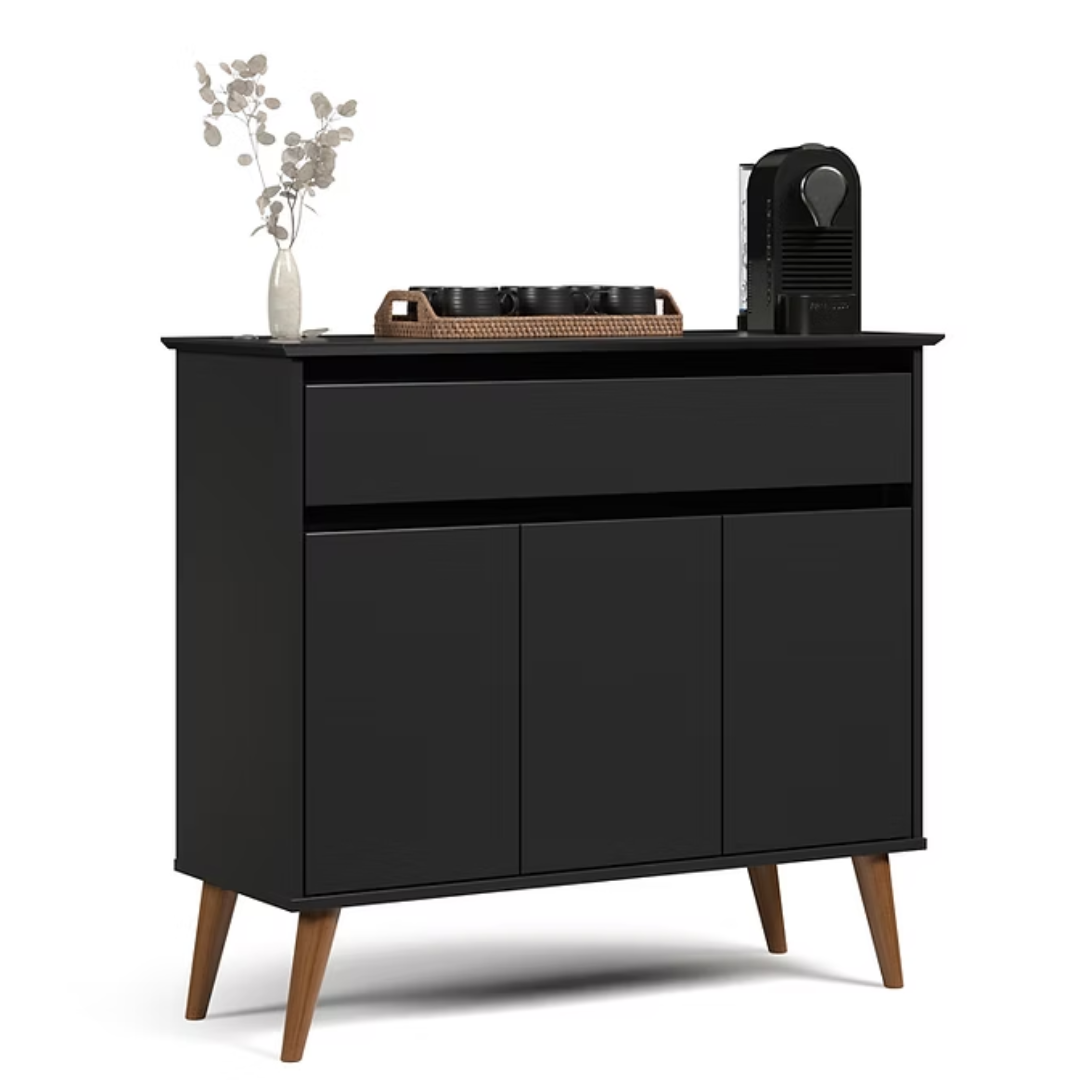 Este buffet aparador é a solução ideal para organizar sua sala com elegância, oferecendo amplo espaço interno para guardar louças e objetos. O móvel apresenta um design moderno e sofisticado, com tampo e portas em MDF usinados e um acabamento clean sem puxadores externos. Sua estrutura conta com pés em madeira que garantem resistência e estabilidade, conferindo um toque retrô que valoriza qualquer decoração.
