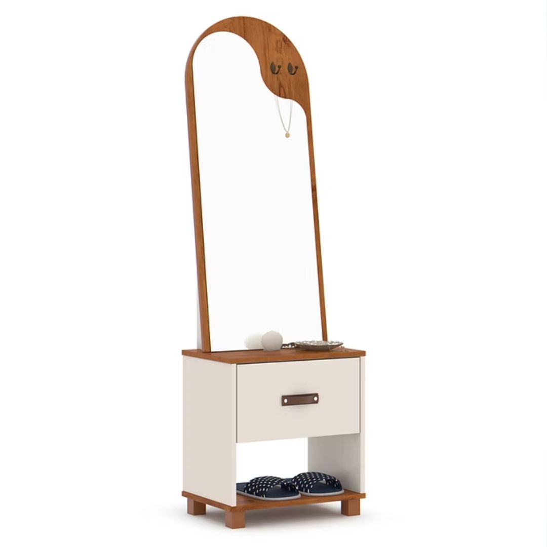 • Este objeto é a Penteadeira de Chão com Espelho e Gaveta, ideal para quem precisa de um móvel funcional que ocupe pouco espaço.