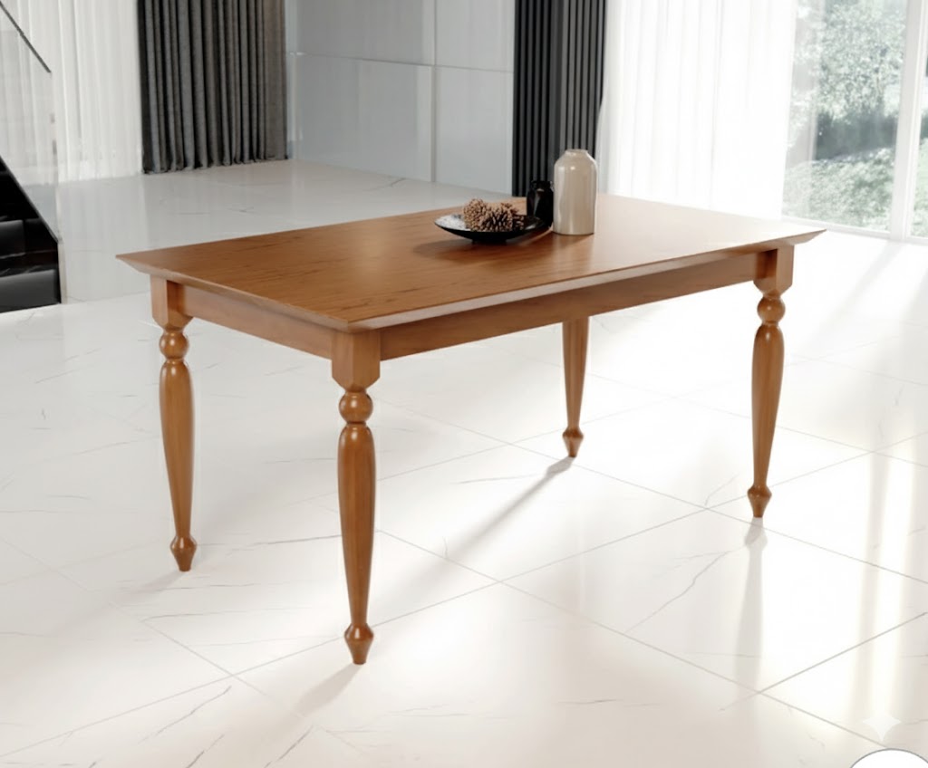 Esta mesa de jantar une a elegância do estilo clássico com a funcionalidade moderna, destacando-se pela estrutura de madeira que conferem um toque artesanal e sofisticado ao ambiente. Com um tampo de acabamento impecável, ela é a escolha perfeita para quem busca um móvel de presença que transforma a sala de jantar em um espaço acolhedor e cheio de personalidade.