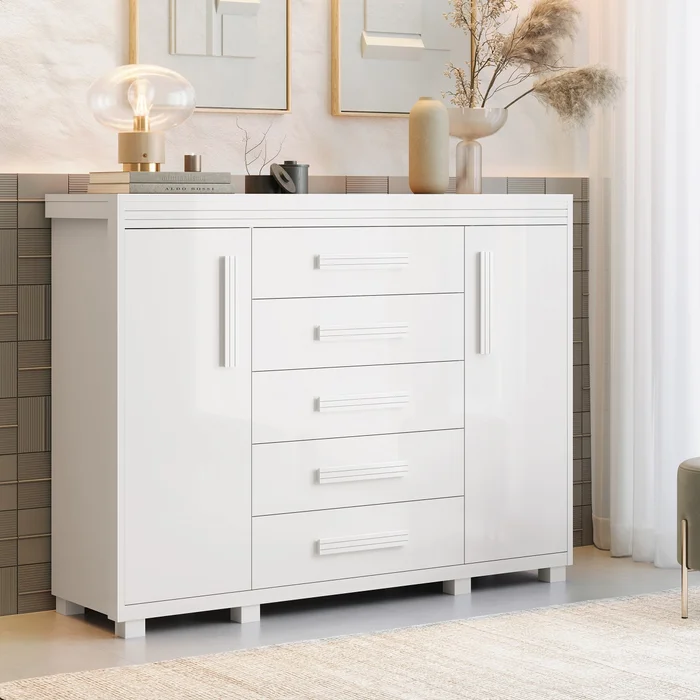 Cômoda Havana 5 Gavetas 2 Portas 100% MDF Branco Barreto Lonçarcci