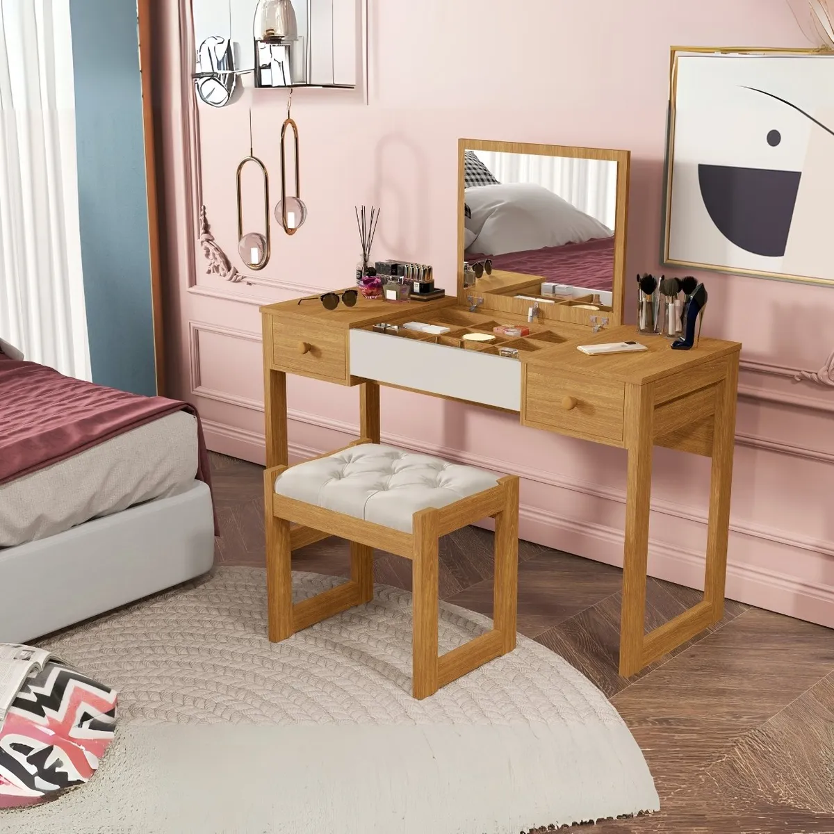 Penteadeira Luanda Com Banqueta 100% MDF Cinamomo/Off-White Barreto Lonçarcci